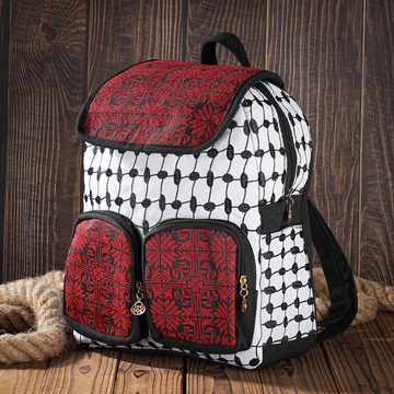 Handmade Tatreez & Kufiya Pattern Embroidered Backpack – Palestinian Craftsmanship