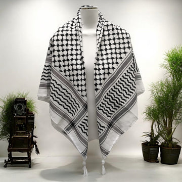 Classic White and Black kufiya special made | Traditional Palestinian Keffiyeh Scarf