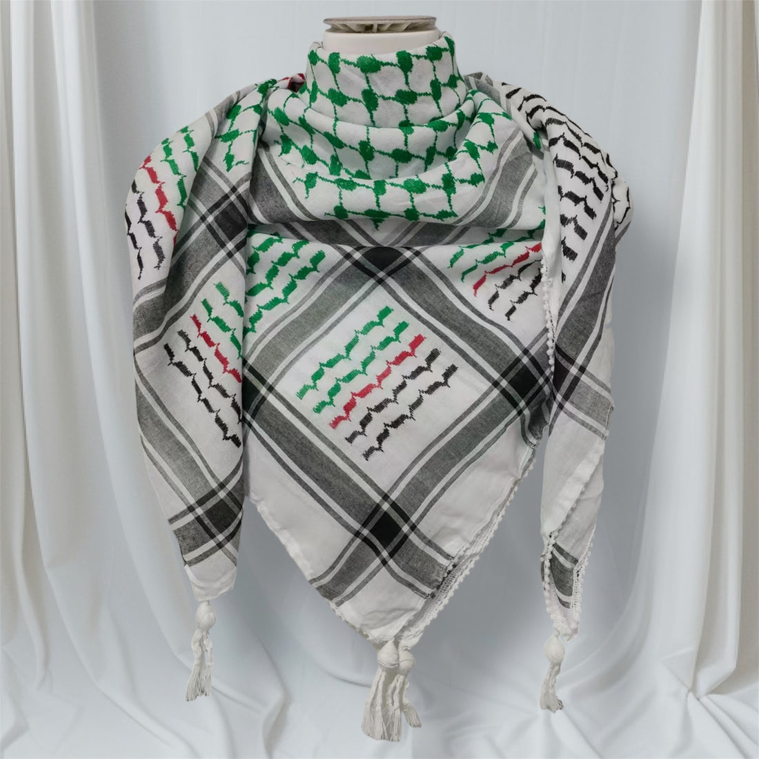 Palestine Flag Kufiya – Traditional Palestinian Scarf in National Colors
