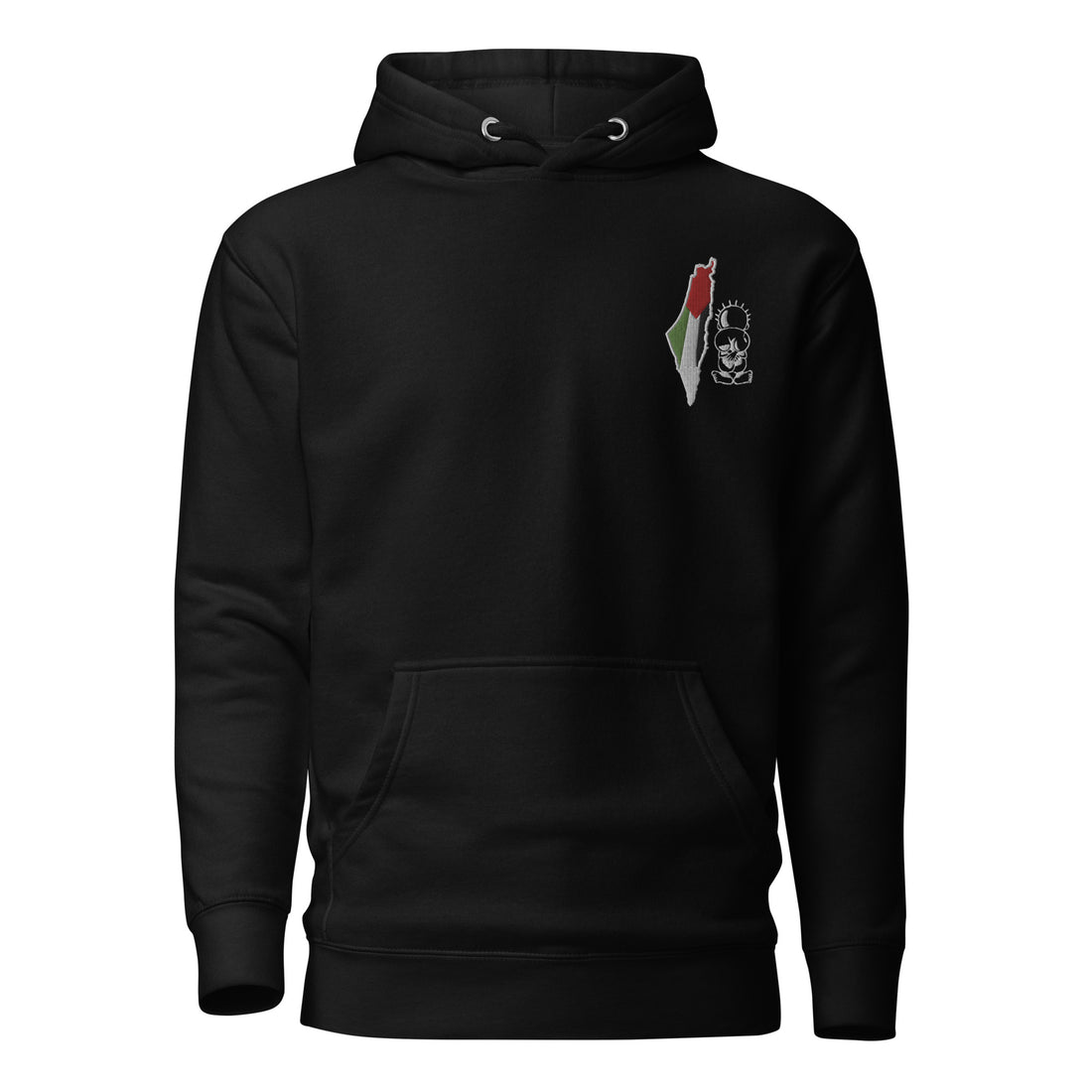 Unisex Palestine Map & Handala Embroidered Hoodie – Soft, Stylish & Iconic