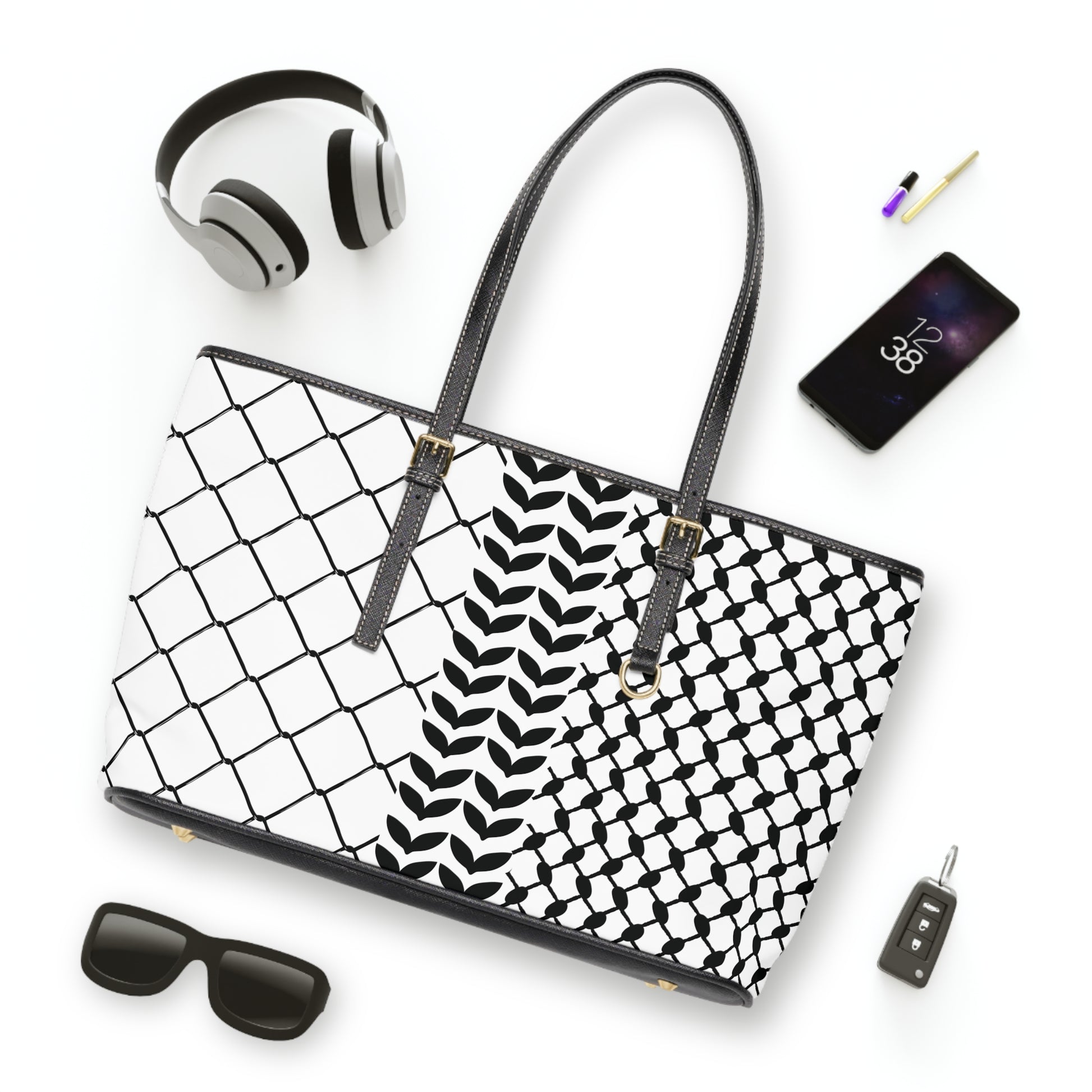 Custom PU Leather Shoulder Bag with Kufiya Pattern