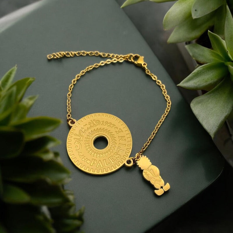 Wear your heart on your sleeve with our stunning stainless steel bracelet featuring a captivating Handala boy pendant. This iconic symbol of Palestinian resistance is a powerful representation of hope and resilience. By choosing this bracelet, you're not only making a fashion statement but also supporting a crucial cause.