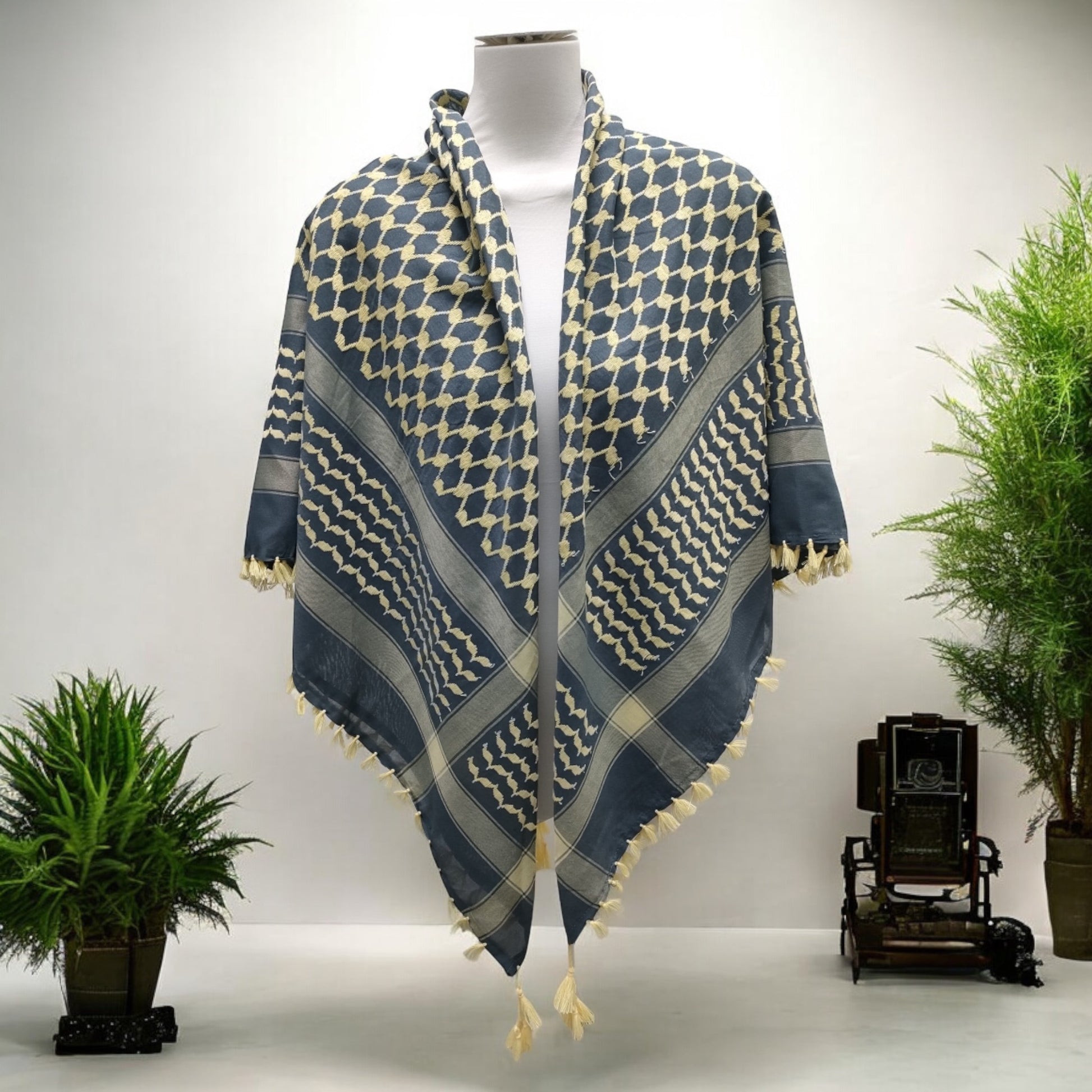 Order yours today and discover the enduring appeal of the gray and cream kufiya scarf!